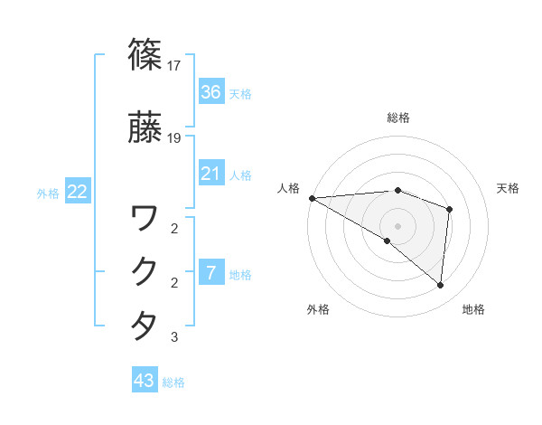 篠藤 ワクタさんの総格は43画の2点!