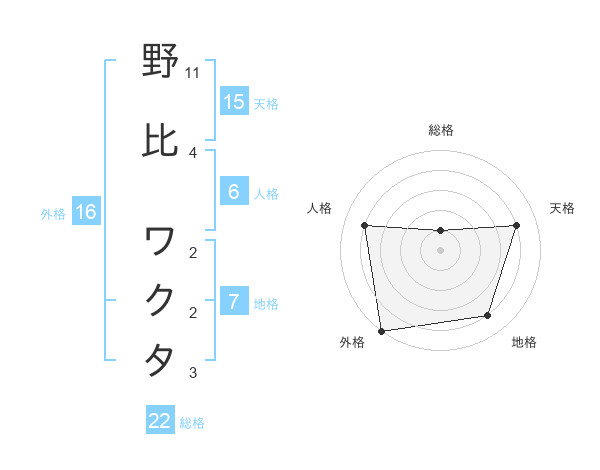 野比 ワクタさんの外格は16画の5点!