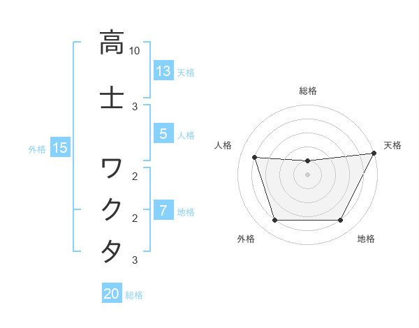 高士 ワクタさんを姓名の画数から五運を鑑定