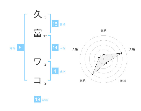 久富 ワコさんの天格は15画の4点!