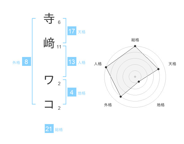 寺﨑 ワコさんの天格は17画の4点!