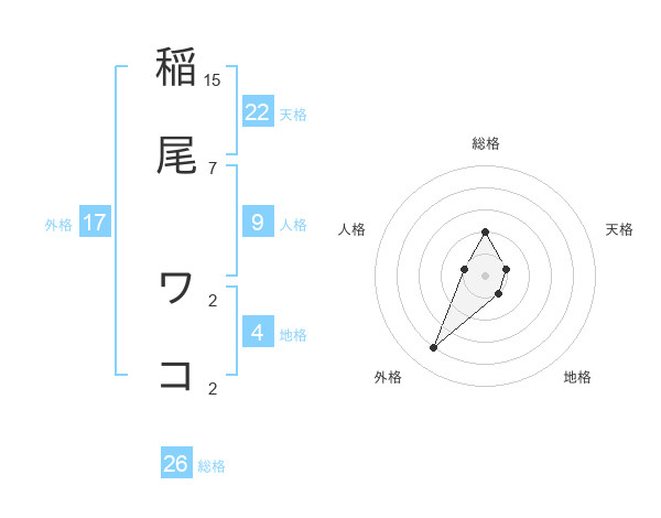 稲尾 ワコさんを姓名の画数から五運を鑑定