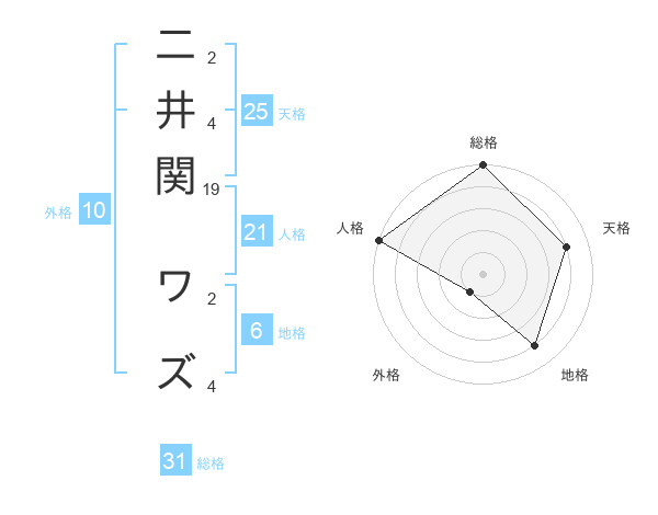 二井関 ワズさんの総格は31画の5点!