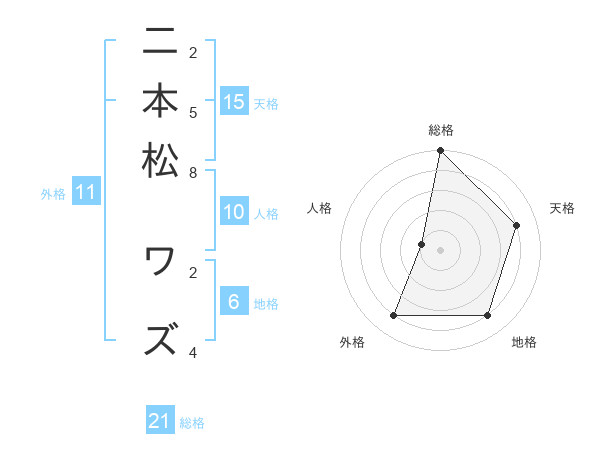二本松 ワズさんを姓名の画数から五運を鑑定