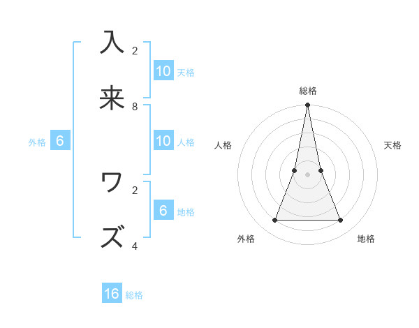 入来 ワズさんの総格は16画の5点!
