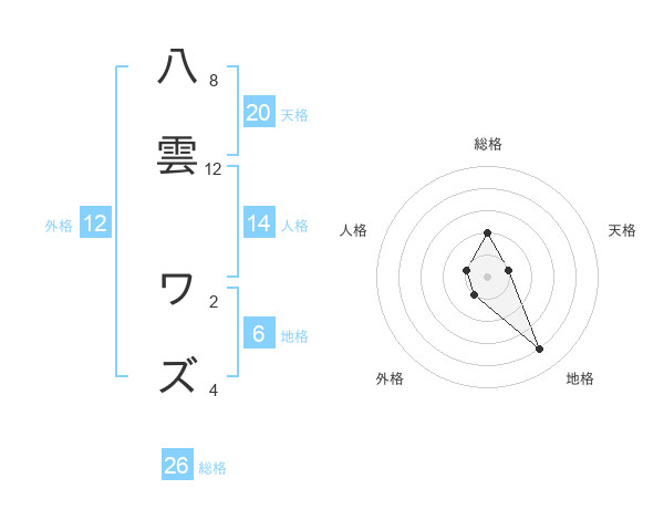 八雲 ワズさんを姓名の画数から五運を鑑定