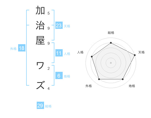加治屋 ワズさんの総格は29画の4点