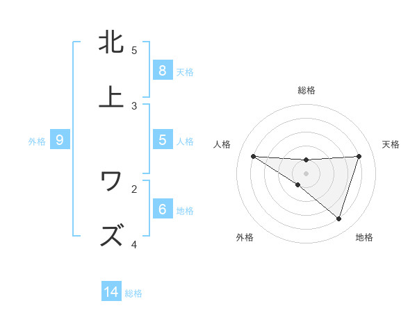 北上 ワズさんの総格は14画の1点!