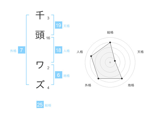 千頭 ワズさんの総格は25画の4点!