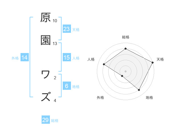 原園 ワズさんの総格は29画の4点!