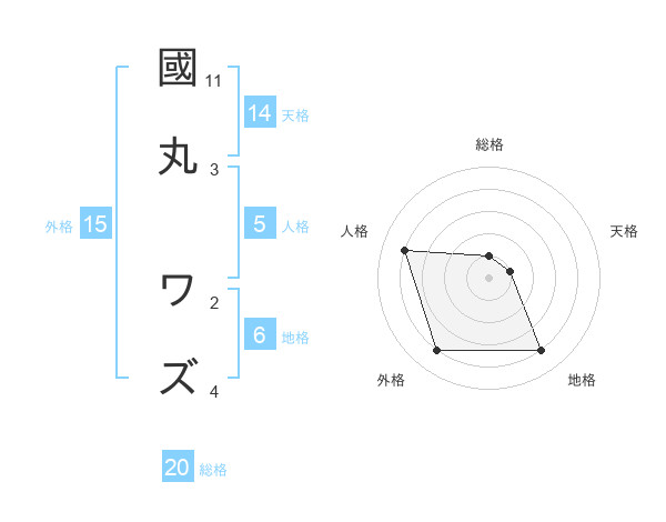 國丸 ワズさんを姓名の画数から五運を鑑定