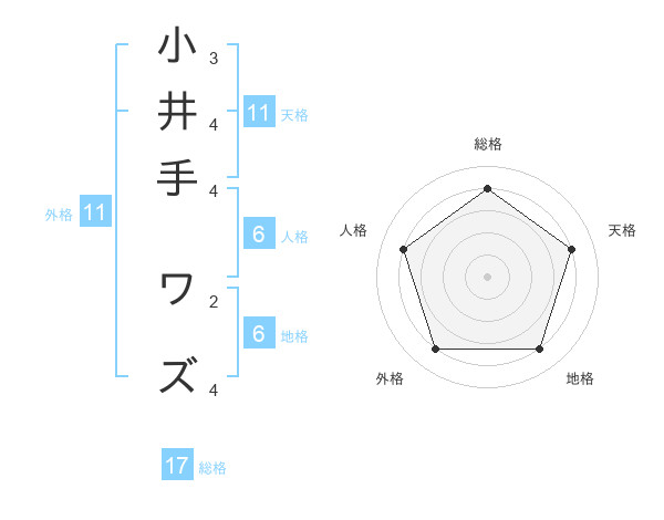 小井手 ワズさんの天格は11画の4点!