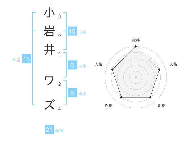 小岩井 ワズさんの総格は21画の5点!