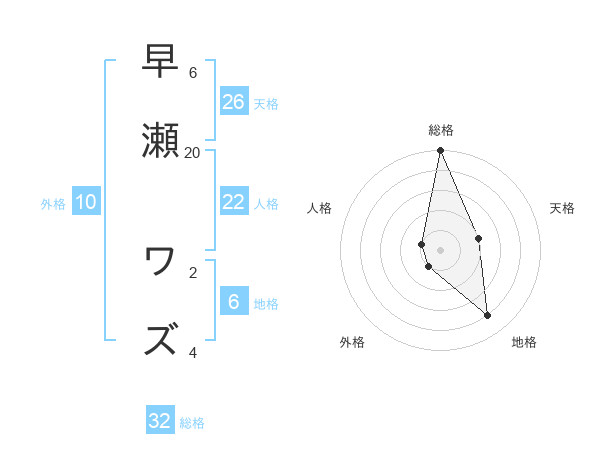 早瀬 ワズさんを姓名の画数から五運を鑑定