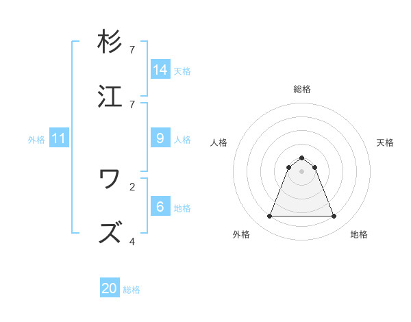 杉江 ワズさんの総格は20画の1点!