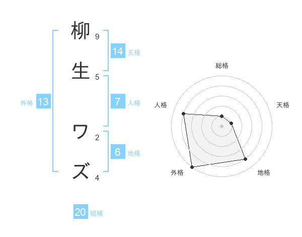 柳生 ワズさんを姓名の画数から五運を鑑定