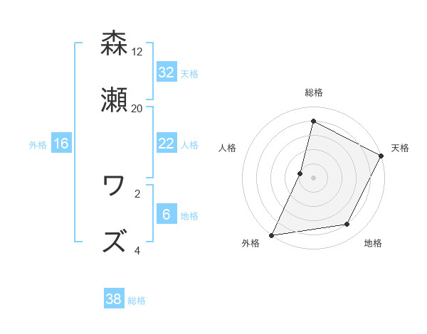 森瀬 ワズさんを姓名の画数から五運を鑑定