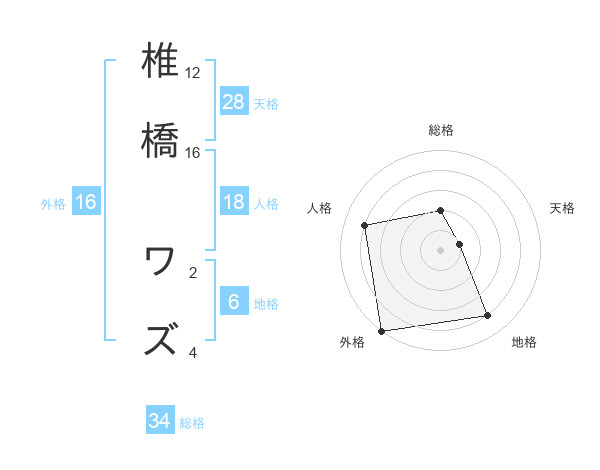 椎橋 ワズさんの総格は34画の2点!