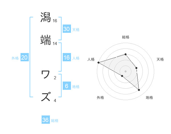 潟端 ワズさんの地格は6画の4点!