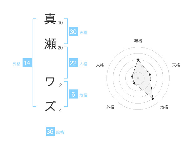 真瀬 ワズさんの天格は30画の2点