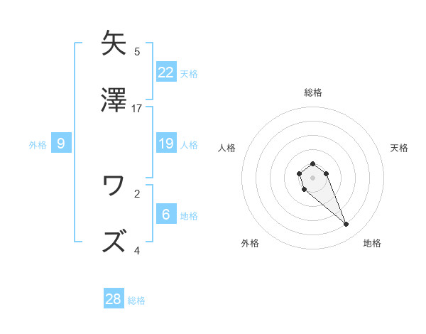 矢澤 ワズさんを姓名の画数から五運を鑑定