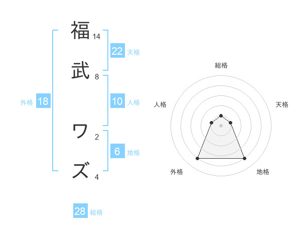 福武 ワズさんの総格は28画の1点!