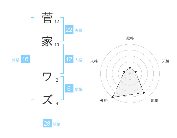 菅家 ワズさんの総格は28画の1点!