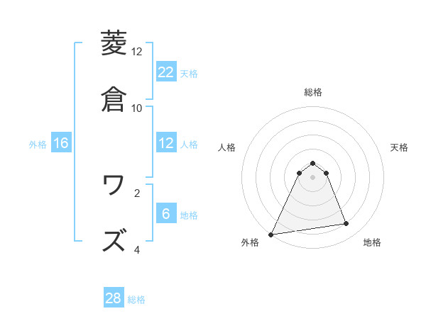 菱倉 ワズさんの総格は28画の1点!