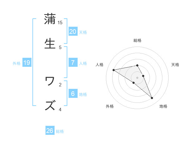 蒲生 ワズさんを姓名の画数から五運を鑑定
