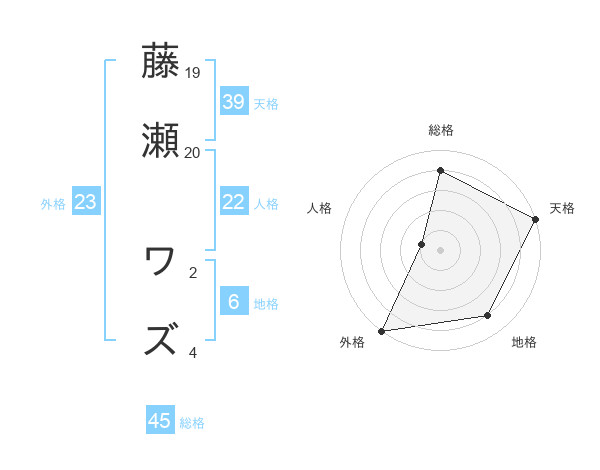 藤瀬 ワズさんの外格は23画の5点!