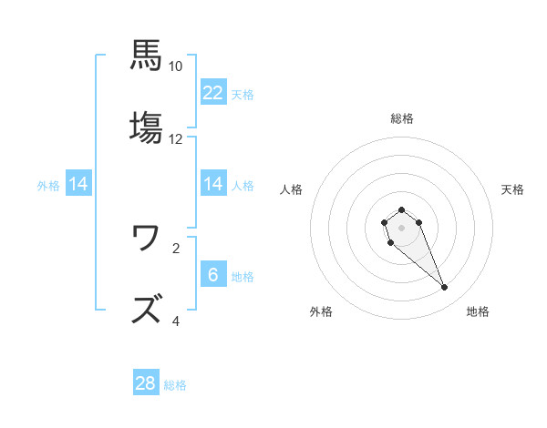 馬塲 ワズさんの総格は28画の1点!