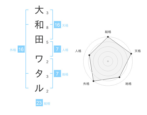 大和田 ワタルさんの外格は16画の5点!