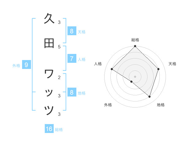 久田 ワッツさんの総格は16画の5点!