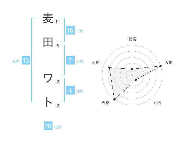 麦田 ワトさんを姓名の画数から五運を鑑定