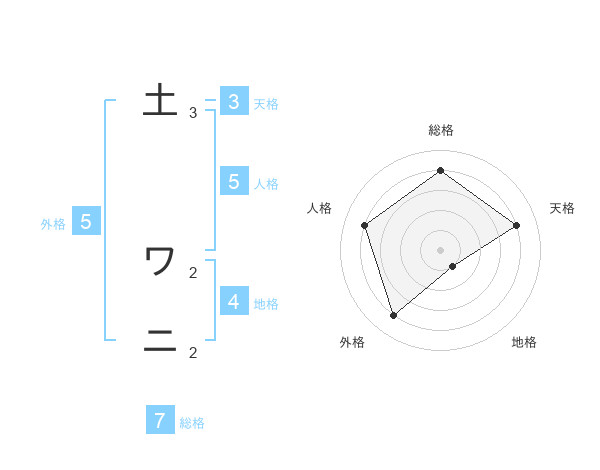 土 ワニさんの総格は7画の4点!