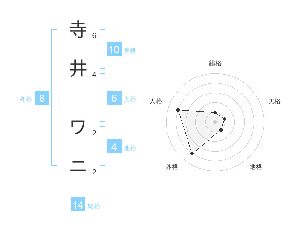 寺井 ワニさんの総格は14画の1点!