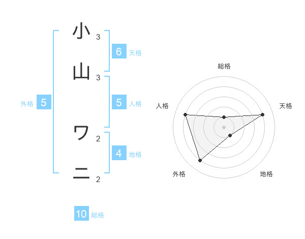 小山 ワニさんの総格は10画の1点!
