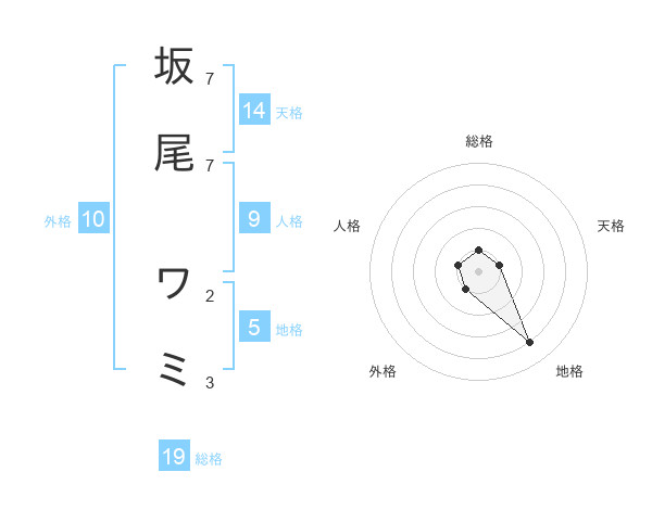 坂尾 ワミさんを姓名の画数から五運を鑑定