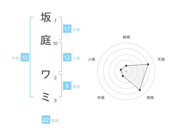 坂庭 ワミさんの地格は5画の4点!