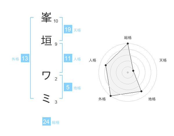 峯垣 ワミさんの外格は13画の5点!