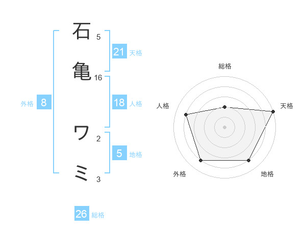 石亀 ワミさんの天格は21画の5点!