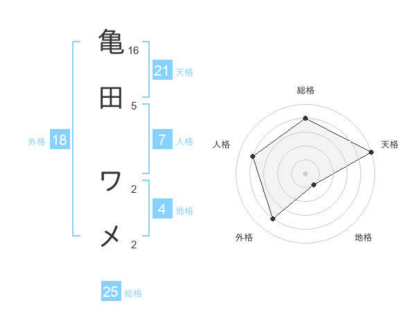 亀田 ワメさんの総格は25画の4点!