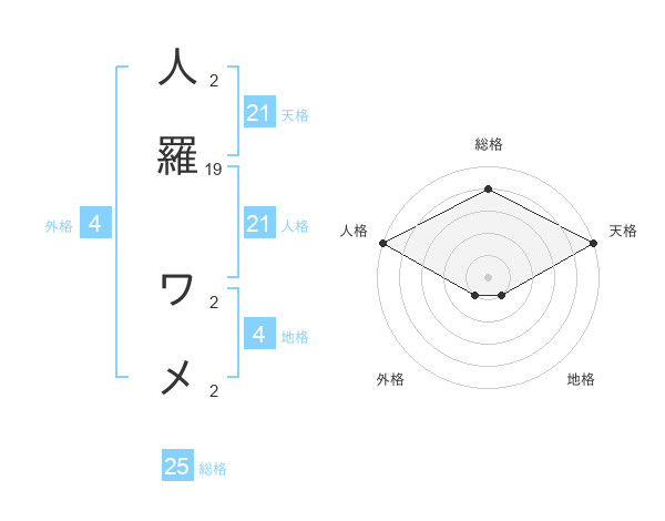 人羅 ワメさんの天格は21画の5点!