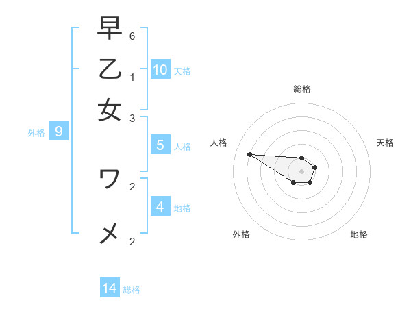 早乙女 ワメさんを姓名の画数から五運を鑑定