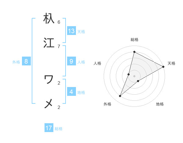 杁江 ワメさんの天格は13画の5点!