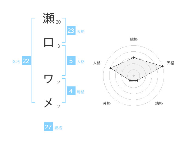 瀬口 ワメさんの天格は23画の5点!