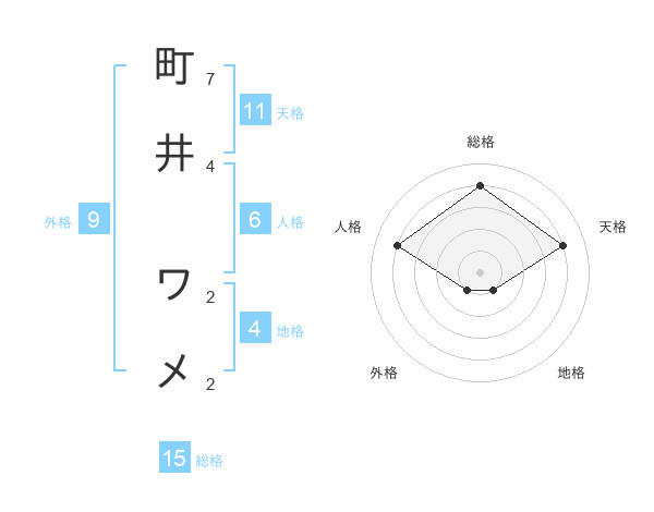 町井 ワメさんの総格は15画の4点!