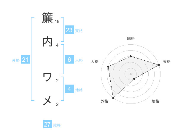 簾内 ワメさんを姓名の画数から五運を鑑定