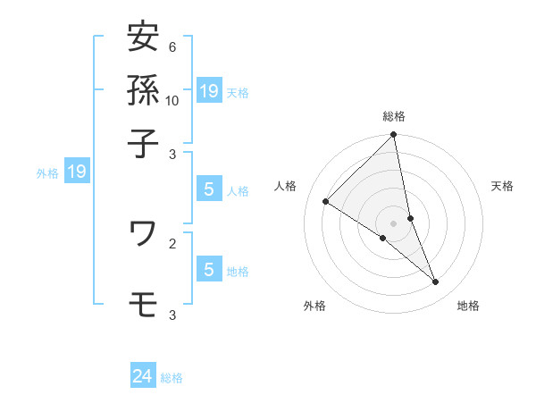 安孫子 ワモさんの総格は24画の5点!