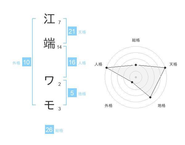 江端 ワモさんの天格は21画の5点!